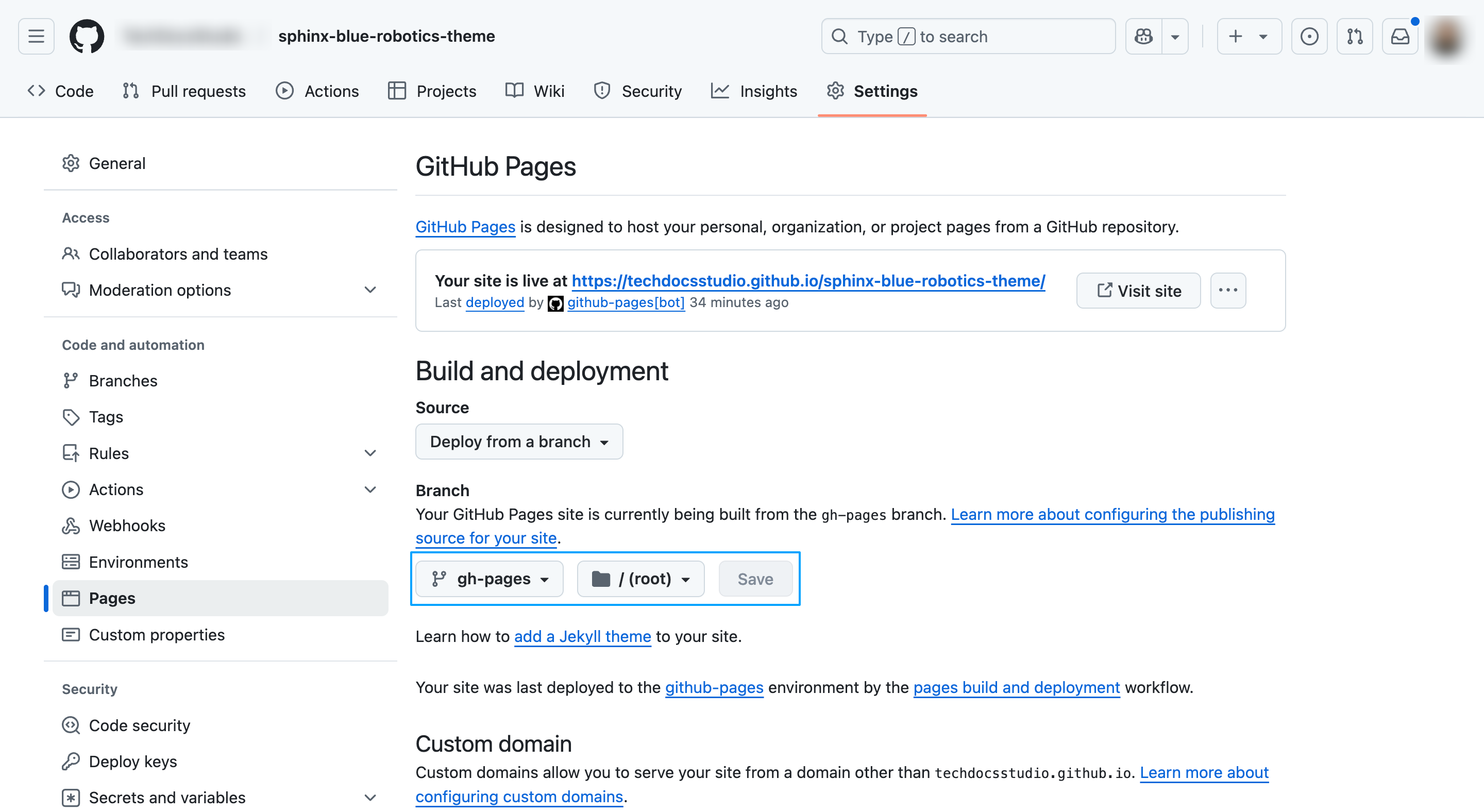 Once you have completed the basic setup, you need to configure GitHub Pages to serve your documentation.